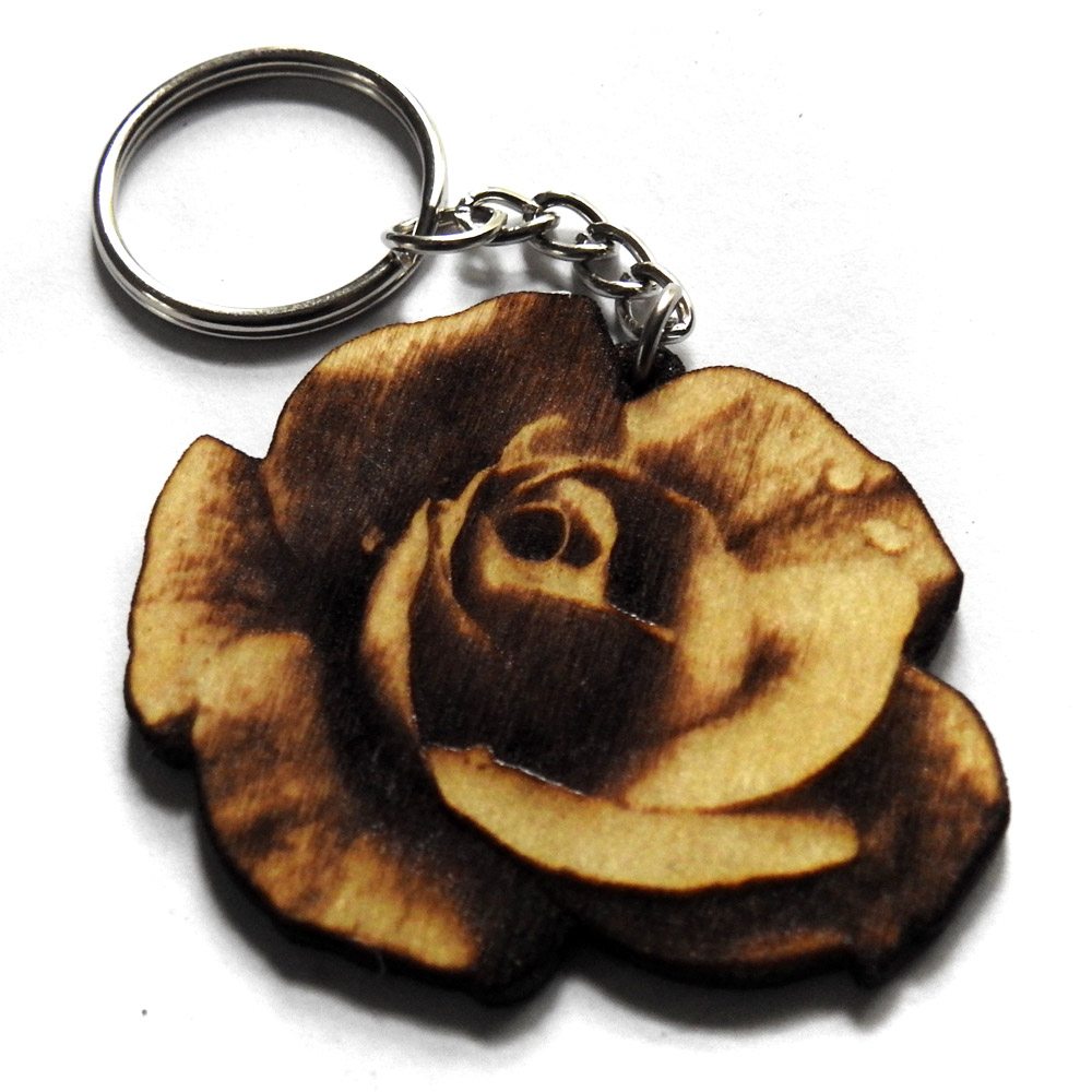 Personalizowane drewniane breloki, grawerowane z jednej lub dwóch stron. Obraz tworzony na podstawie przesłanego zdjęcia lub grafiki, wycięty w konturze przedstawionego obiektu (jeśli warunki techniczne na to pozwalają – ostrość, kompletność, widoczne krawędzie). Na odwrocie breloków z jednostronnym wzorem można umieścić krótki napis.